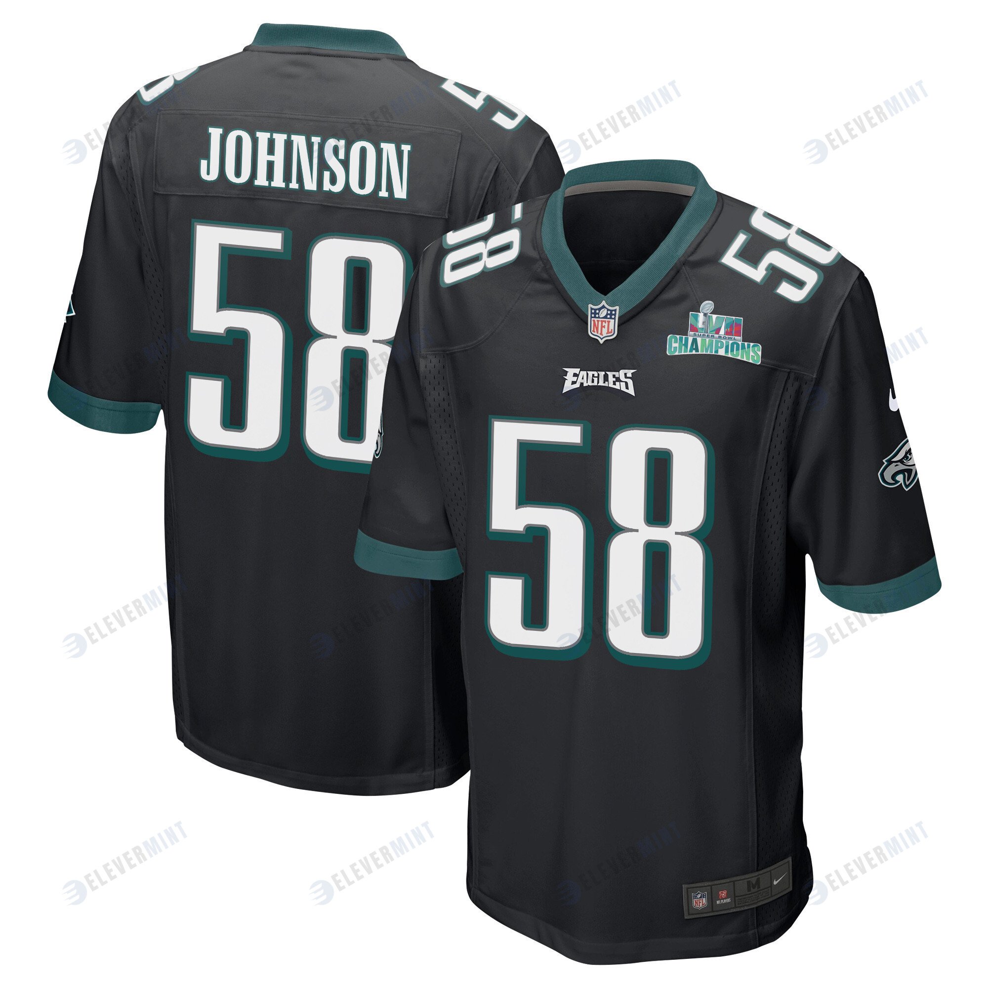 Kyron Johnson 58 Philadelphia Eagles Super Bowl LVII Champions Men Game Jersey - Black