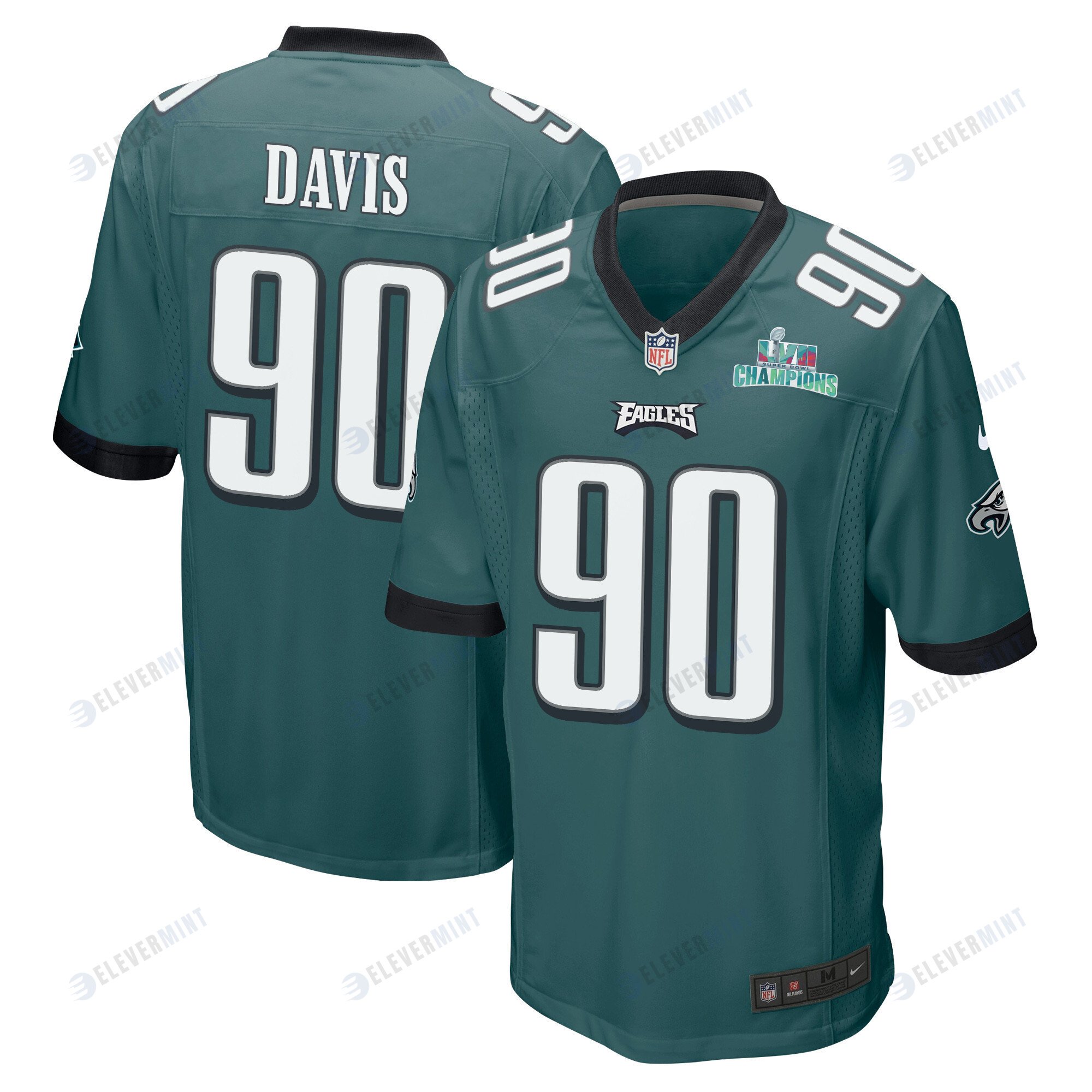Jordan Davis 90 Philadelphia Eagles Super Bowl LVII Champions Men Game Jersey - Midnight Green