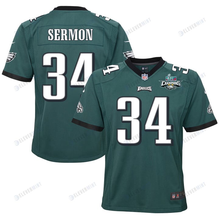 Trey Sermon 34 Philadelphia Eagles Super Bowl LVII Champions 2 Stars 2 Stars Youth Game Jersey - Black