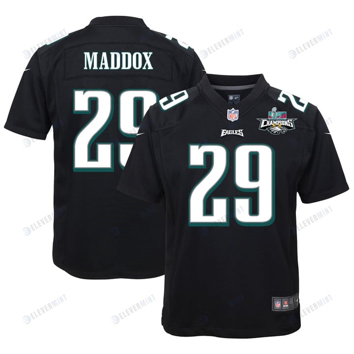 Avonte Maddox 29 Philadelphia Eagles Super Bowl LVII Champions 2 Stars Youth Game Jersey - Black