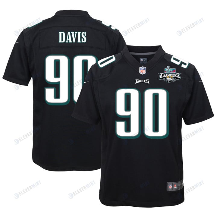 Jordan Davis 90 Philadelphia Eagles Super Bowl LVII Champions 2 Stars Youth Game Jersey - Black