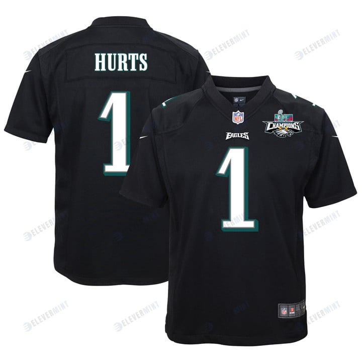 Jalen Hurts 1 Philadelphia Eagles Super Bowl LVII Champions 2 Stars Youth Game Jersey - Black