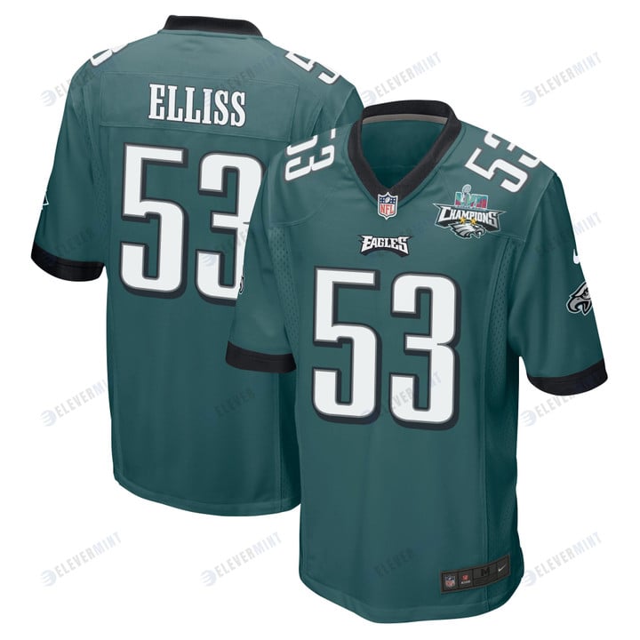 Christian Elliss 53 Philadelphia Eagles Super Bowl LVII Champions 2 Stars Men Game Jersey - Midnight Green