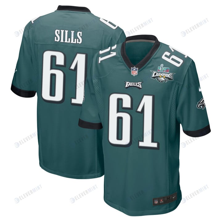 Josh Sills 61 Philadelphia Eagles Super Bowl LVII Champions 2 Stars Men Game Jersey - Midnight Green