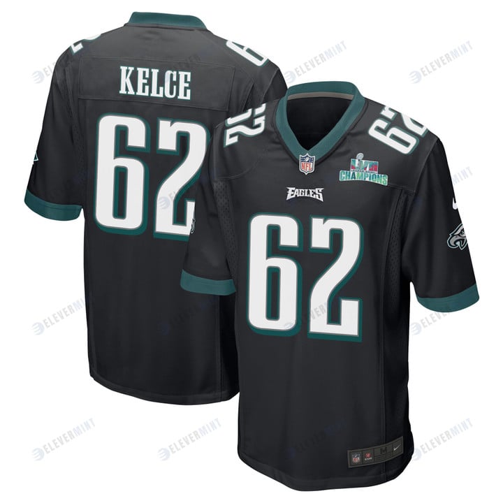Jason Kelce 62 Philadelphia Eagles Super Bowl LVII Champions Men Game Jersey - Black