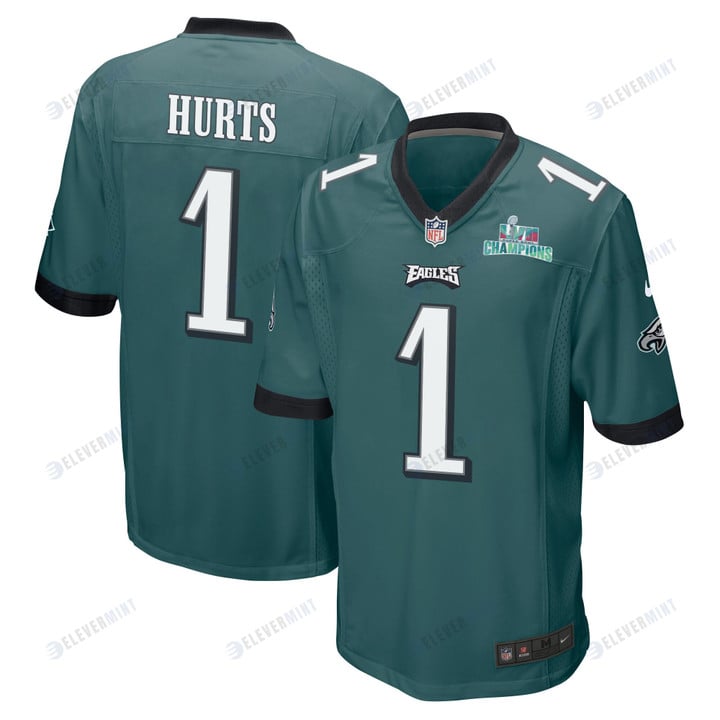 Jalen Hurts 1 Philadelphia Eagles Super Bowl LVII Champions Men Game Jersey - Midnight Green