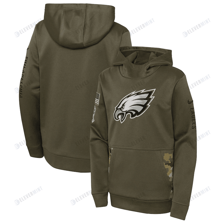 Philadelphia Eagles Youth 2022 Salute To Service Performance Pullover Hoodie - Olive