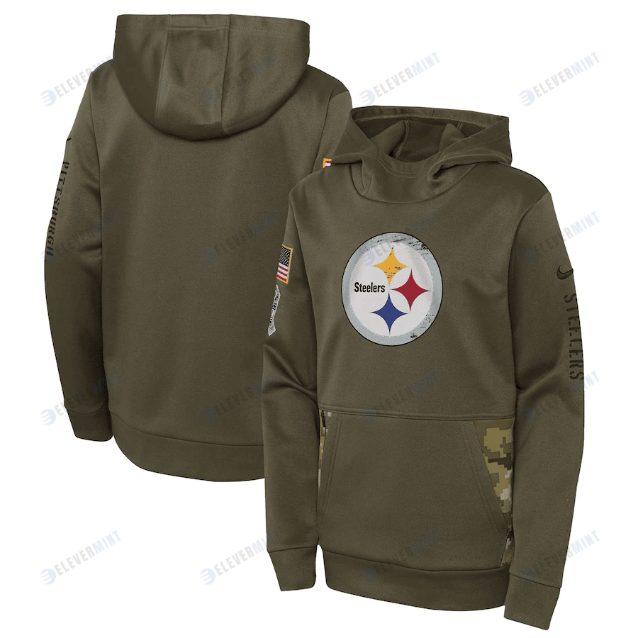 Pittsburgh Steelers Youth 2022 Salute To Service Performance Pullover Hoodie - Olive