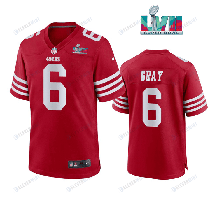 Danny Gray 6 San Francisco 49Ers Super Bowl LVII Men Game Jersey- Scarlet