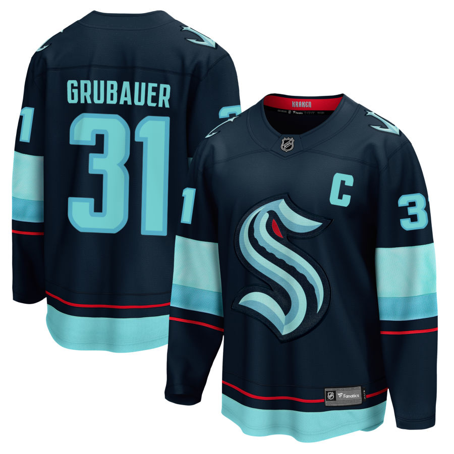Philipp Grubauer Seattle Kraken Fanatics Branded Home Breakaway Jersey - Navy