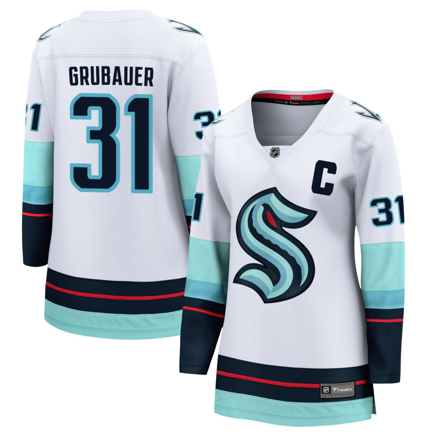 Philipp Grubauer Seattle Kraken Fanatics Branded Women's Away Breakaway Jersey - White