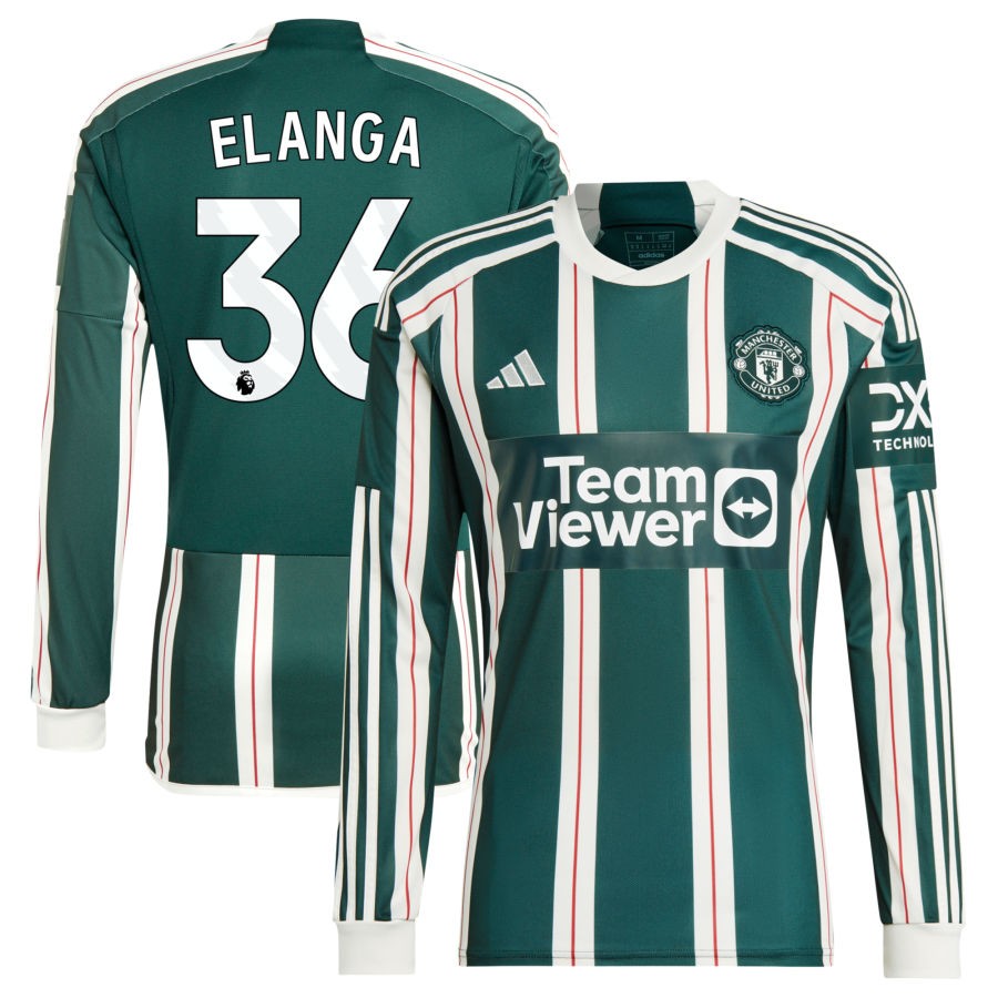 Anthony Elanga Manchester United adidas 2023/24 Away Long Sleeve Replica Jersey - Green