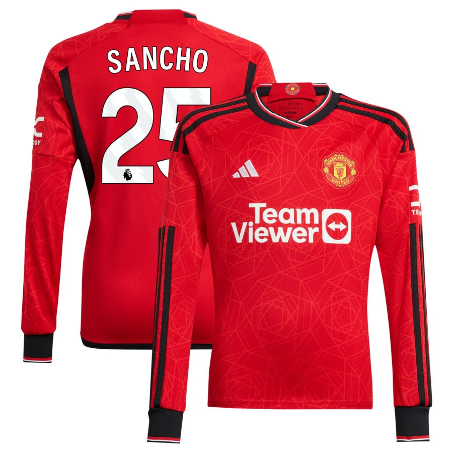 Jadon Sancho Manchester United adidas 2023/24 Home Replica Long Sleeve Jersey - Red