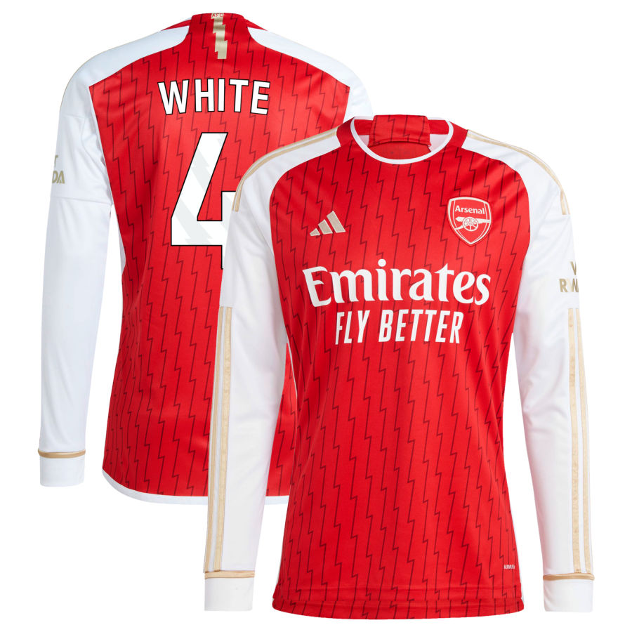 Ben White Arsenal adidas 2023/24 Home Replica Long Sleeve Jersey - Red