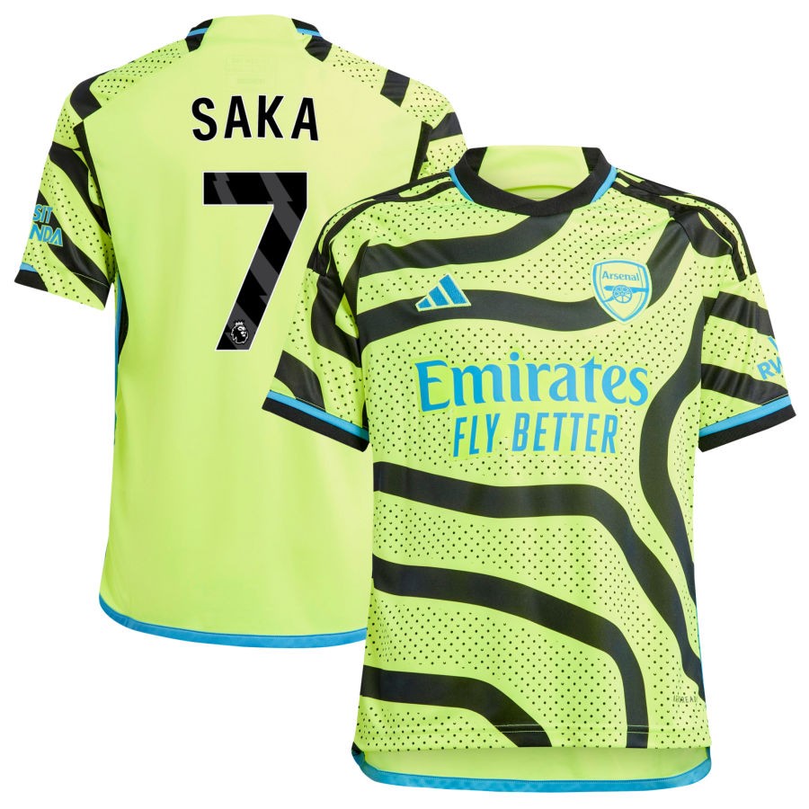 Bukayo Saka Arsenal adidas Youth 2023/24 Away Replica Jersey - Yellow