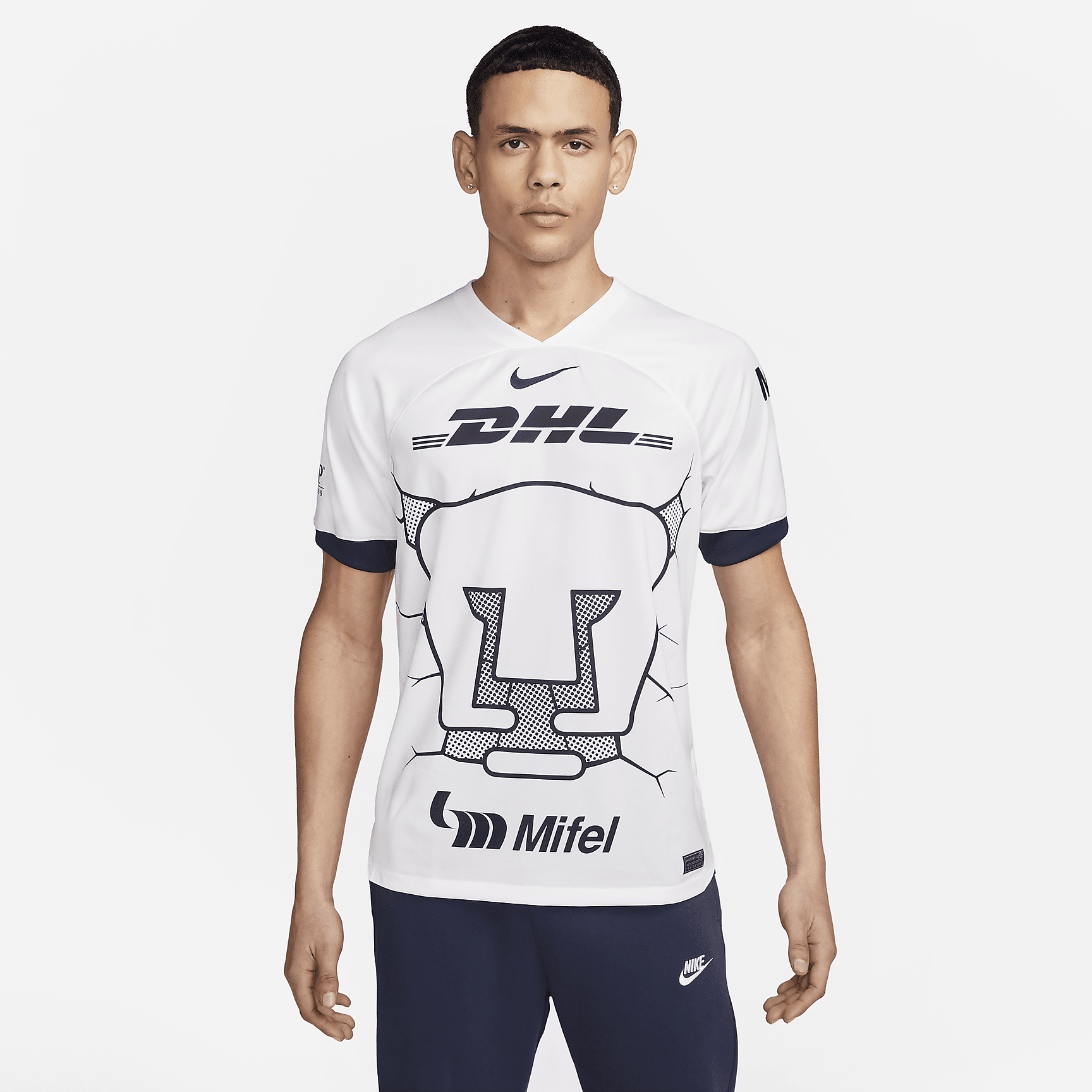 Pumas UNAM 2023/24 Stadium Home Men's Nike Dri-FIT Soccer Jersey - White/Obsidian/Obsidian
