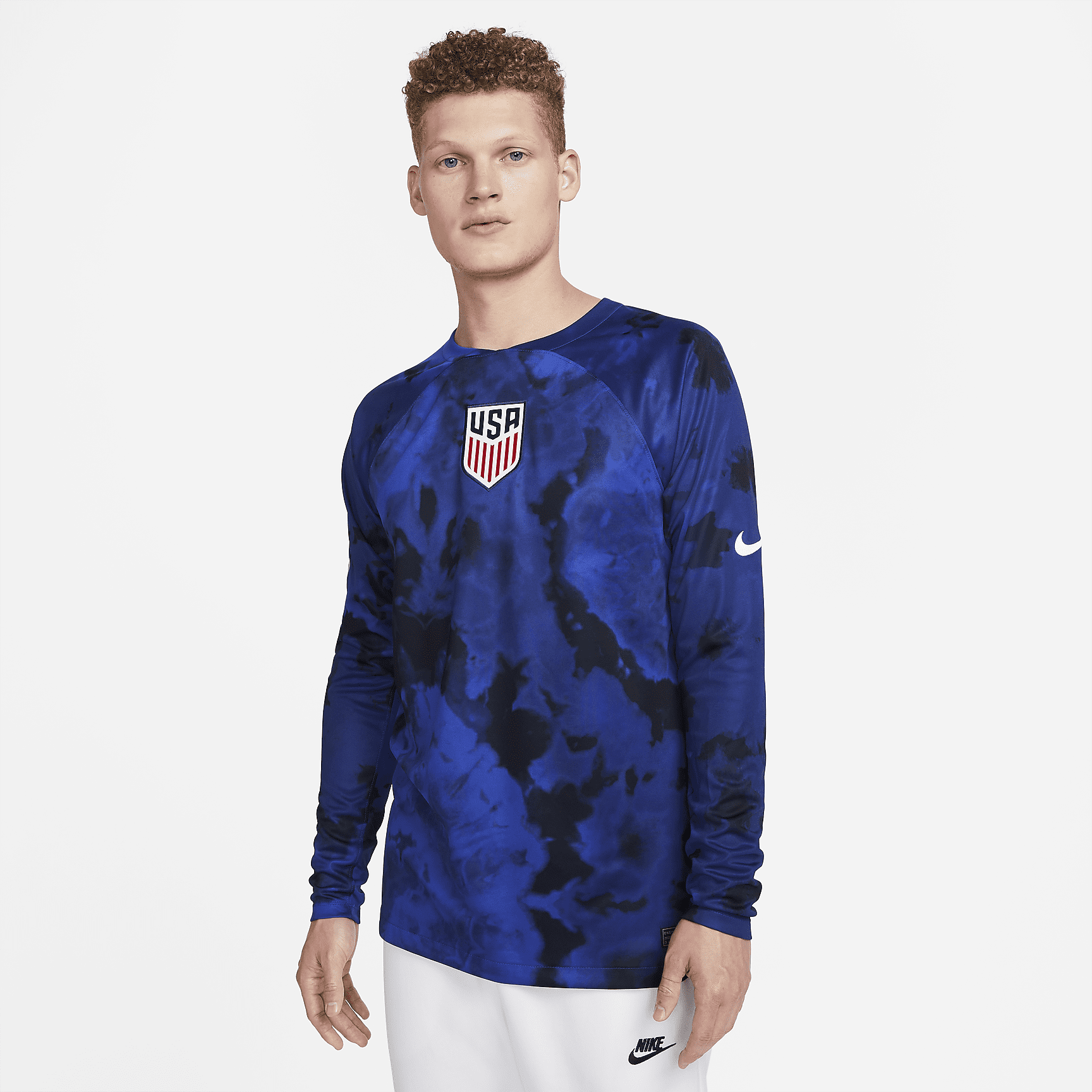 U.S. 2022/23 Stadium Away Men's Nike Dri-FIT Long-Sleeve Soccer Jersey - Bright Blue/White