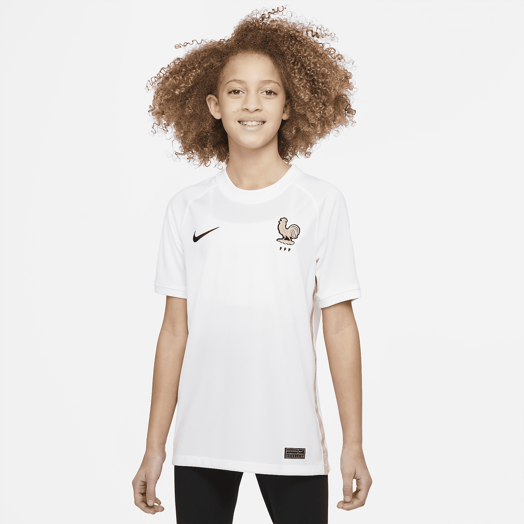 FFF 2022 Stadium Away Big Kids' Nike Dri-FIT Soccer Jersey - White/Pink Glaze/Blackened Blue