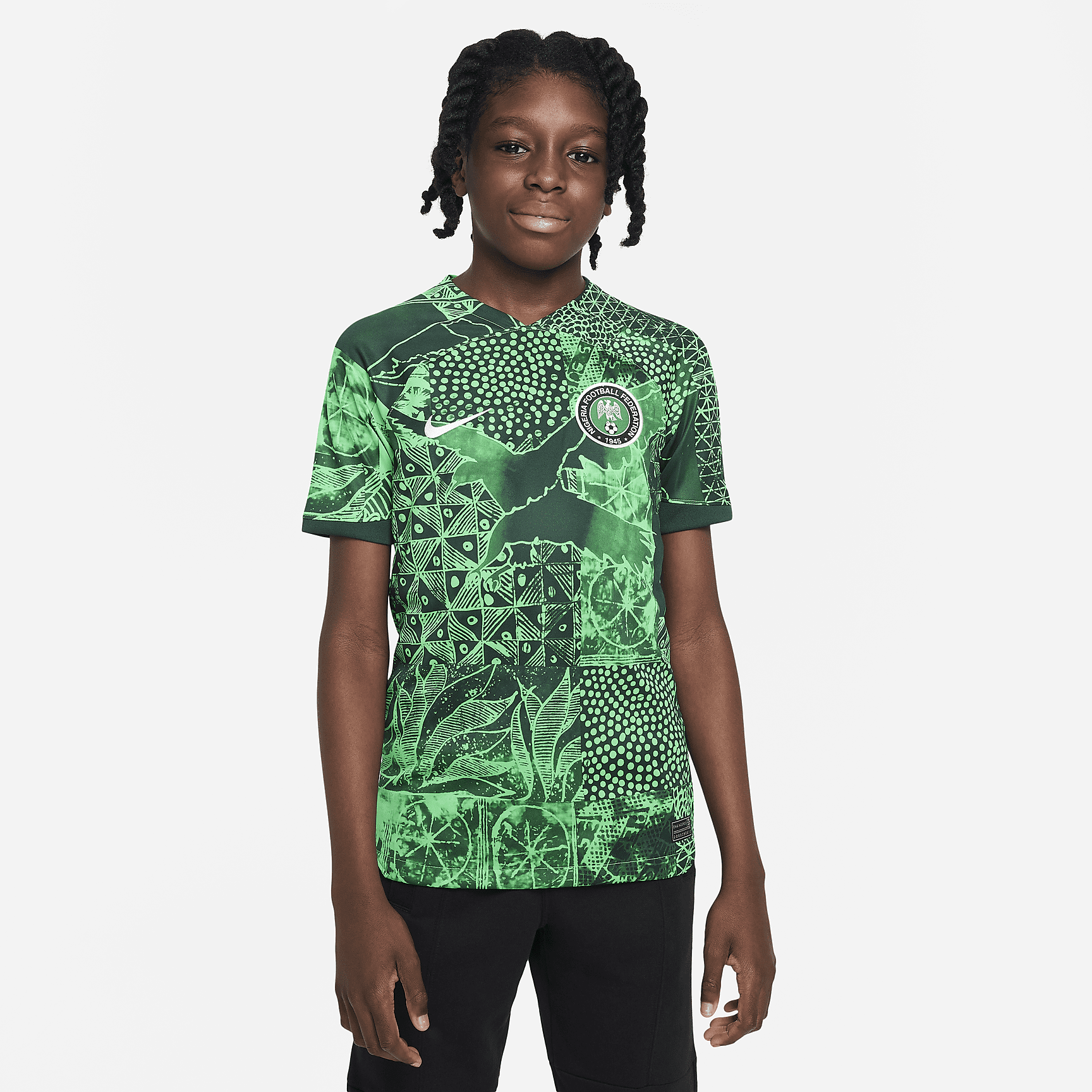 Nigeria 2022/23 Stadium Home Big Kids' Nike Dri-FIT Soccer Jersey - Green Spark/Pine Green/Black/White