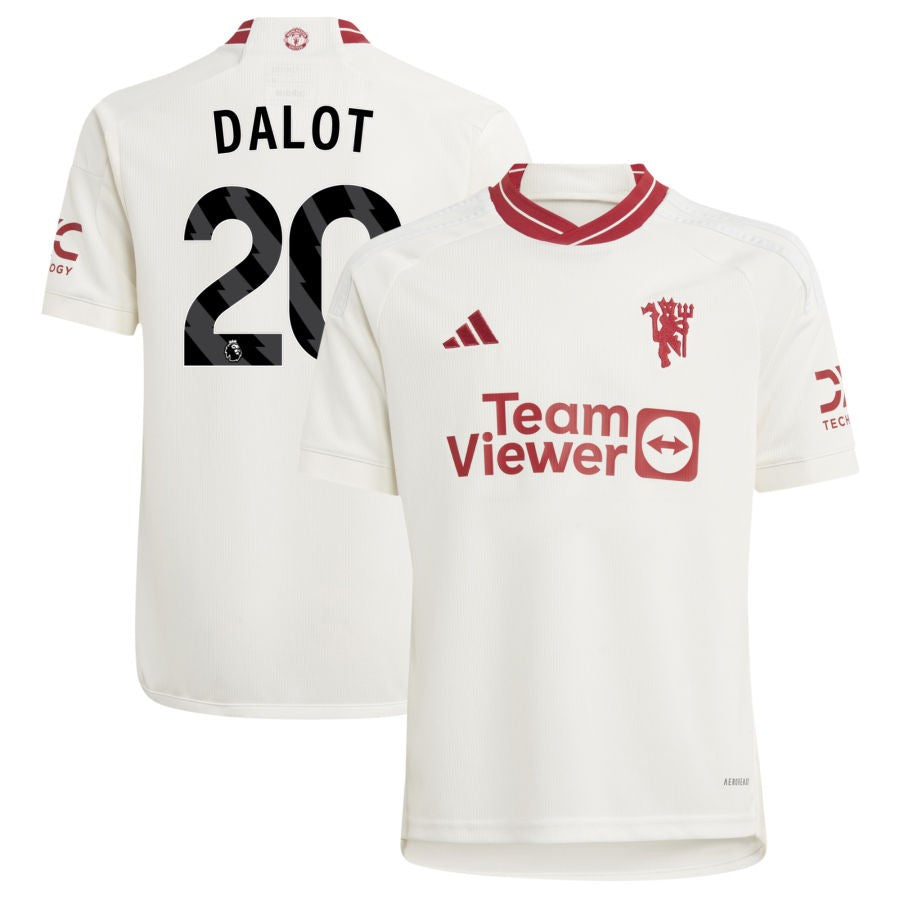 Diogo Dalot Manchester United adidas Youth 2023/24 Third Replica Jersey - White