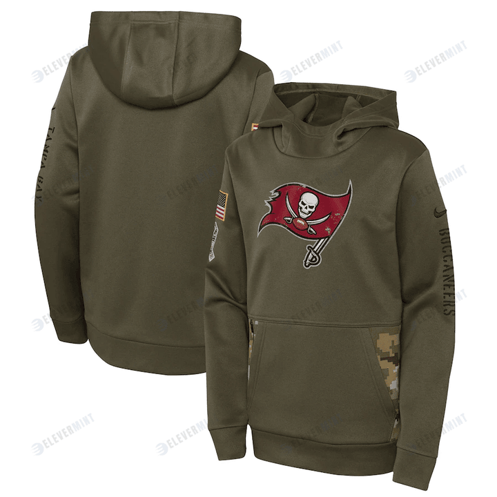 Tampa Bay Buccaneers Youth 2022 Salute To Service Performance Pullover Hoodie - Olive